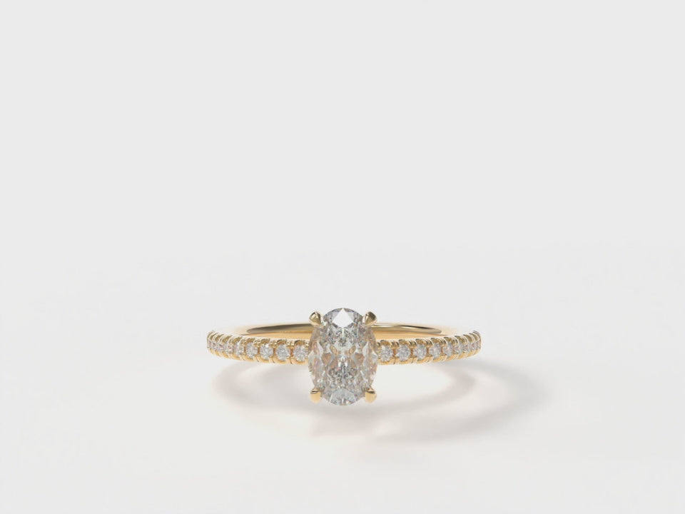Siro Ovaali on unohtumattoman kaunis ja eettinen kihla- ja vihkisormus, jonka rungossa loistaa laboratoriossa valmistettu ovaalin muotoinen keskitimantti sekä sivuilla pienet briljantti timantit. Siro 1.6mm levyinen runko on 14k kierrätettyä keltakultaa.
